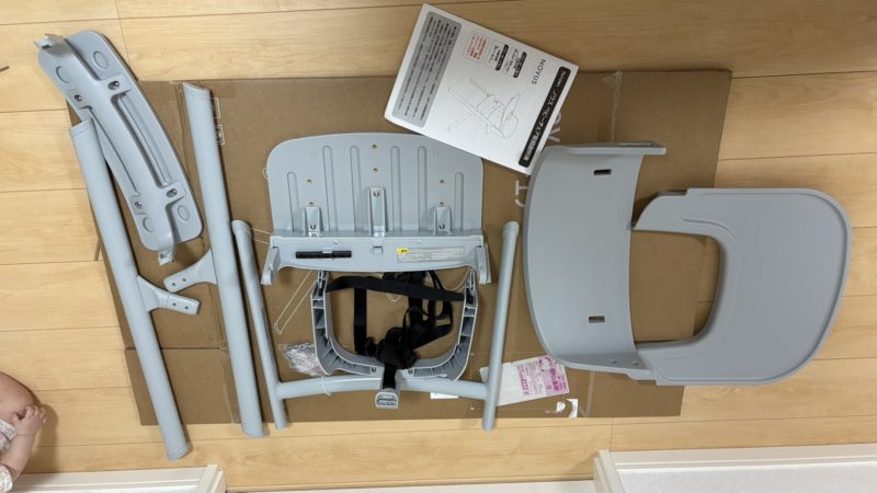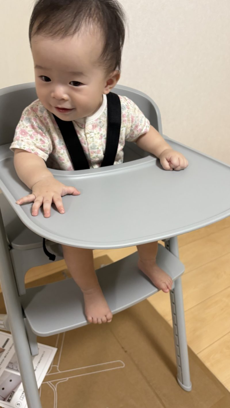 これまでは離乳食を床や膝上で食べさせていたが、親の体勢がきつく、本人も注意散漫で食べられなくなってきたので、ハイチェアを新調することにした。